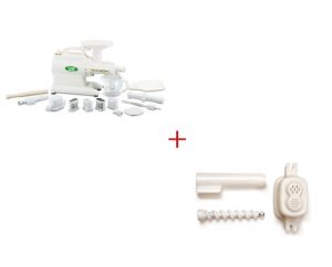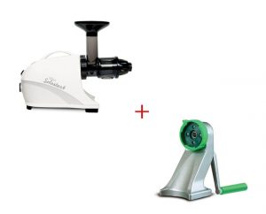 Cette offre inclus l'extracteur de Omega 8224/8226 et l'accessoire moulin à huile. Cette offre vous permettra de réaliser toutes les préparations que fait l'extracteur de jus Omega 8224/8226 mais aussi de l'huile d'olive ou de graines (tournesol, sésame, ...).