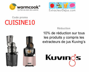 Le site WarmCook propose tous les extracteurs de jus de la marque Kuving's sont les derniers modèle REVO830 et EVO820 (la réduction de 10% est v